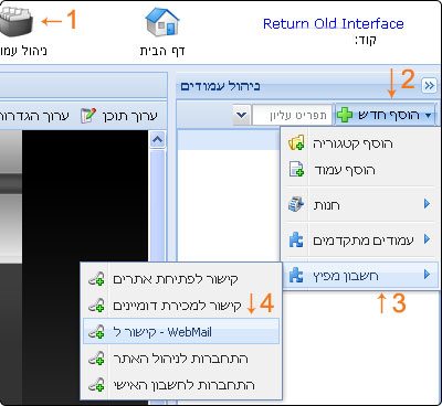 בסיום התהליך יתווסף עמוד "קישור ל WebMail" לתפריט העמודים על פי המיקום שהוגדר על ידך.